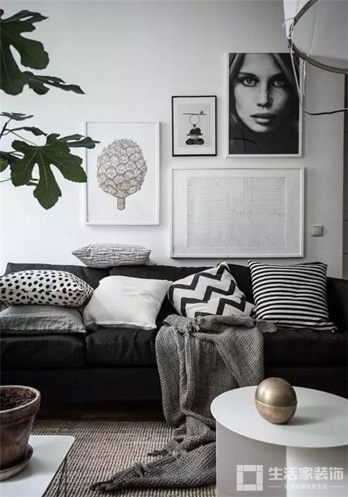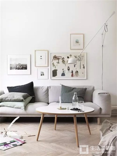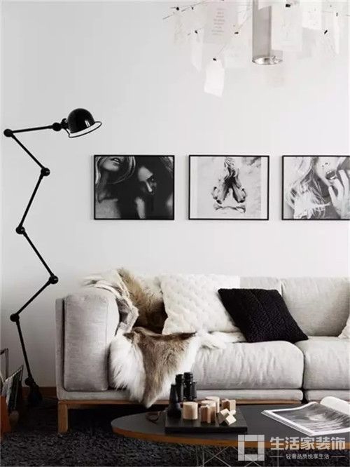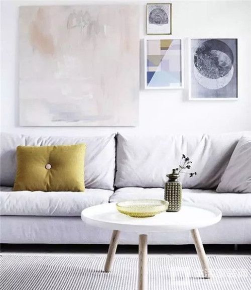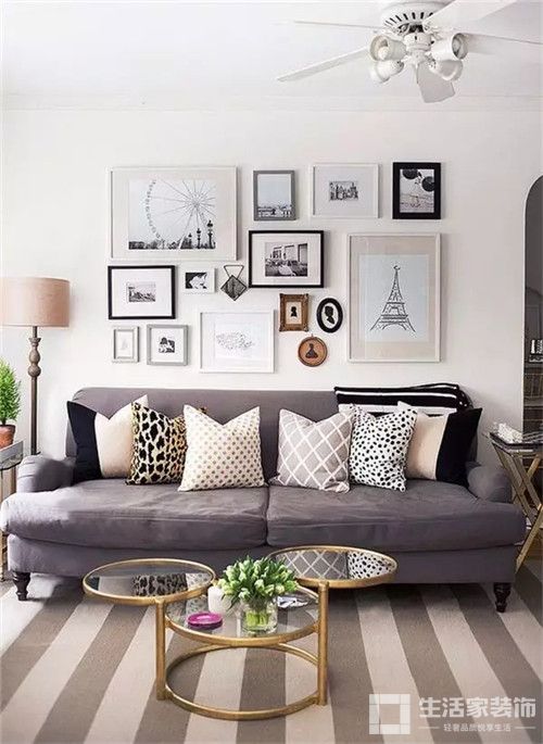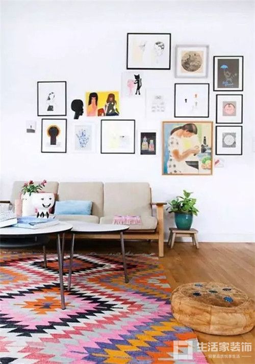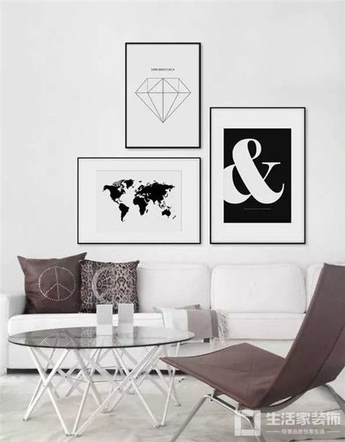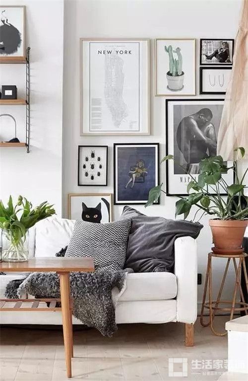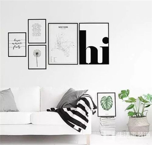 正确的沙发墙装饰应该是大小组合得当、空间留白合理的呈现。