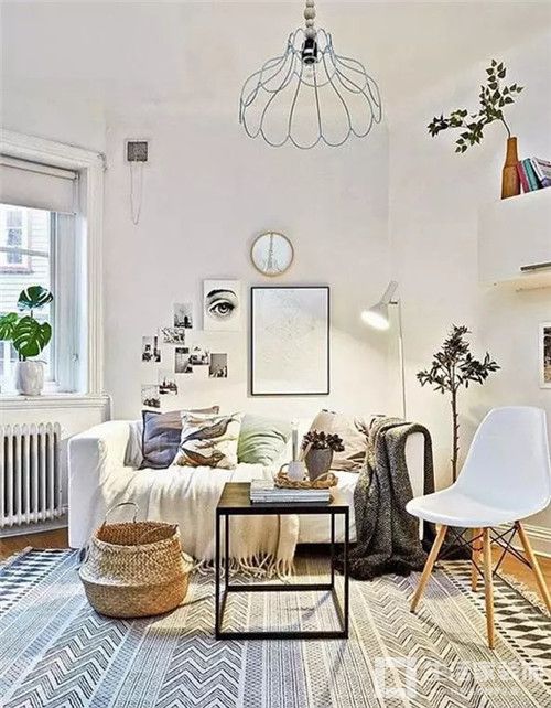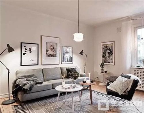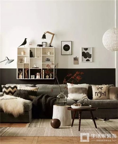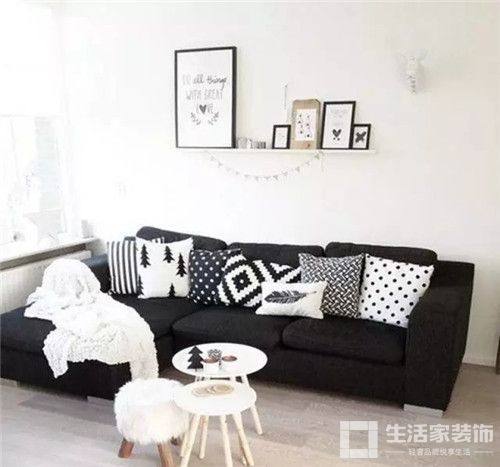 ▲干净的配色、黑色的细边框都对应着简约的周边风格以及沙发上的条纹毛毯
