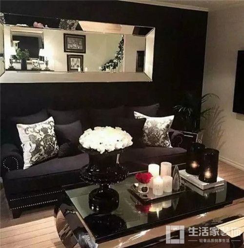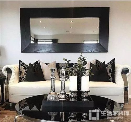 有很多沙发墙选择镜子一类的明亮物件做装饰,一旦装上你会发现,任何有镜面反射效果的饰品都会让你的墙面像豁开了一道大口子,任何出现在沙发对面的东西都有可能成为你墙面装饰的一部分。