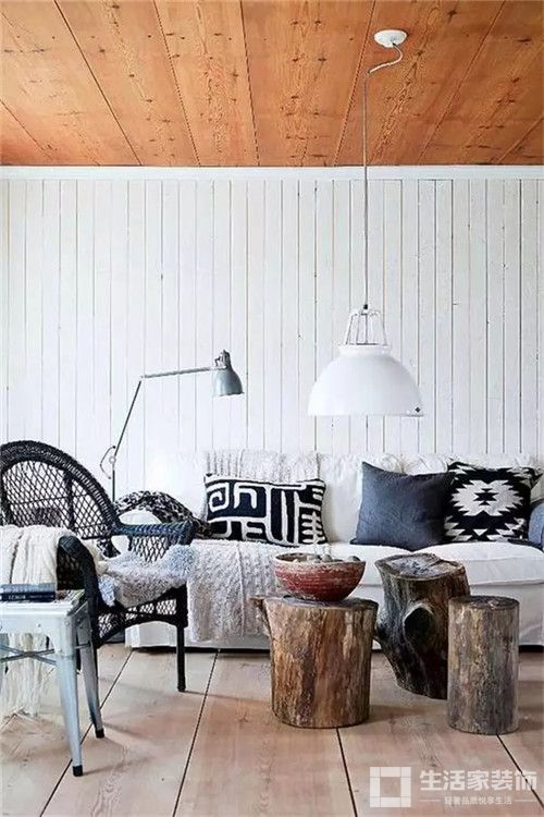 如果你觉得以上两种墙面设计方式都太过平常,那么可以尝试用一些特殊材质和手法打造一面别致的背景墙,红砖、木料、水泥,撞色,都能让你家的沙发背景墙个性十足。