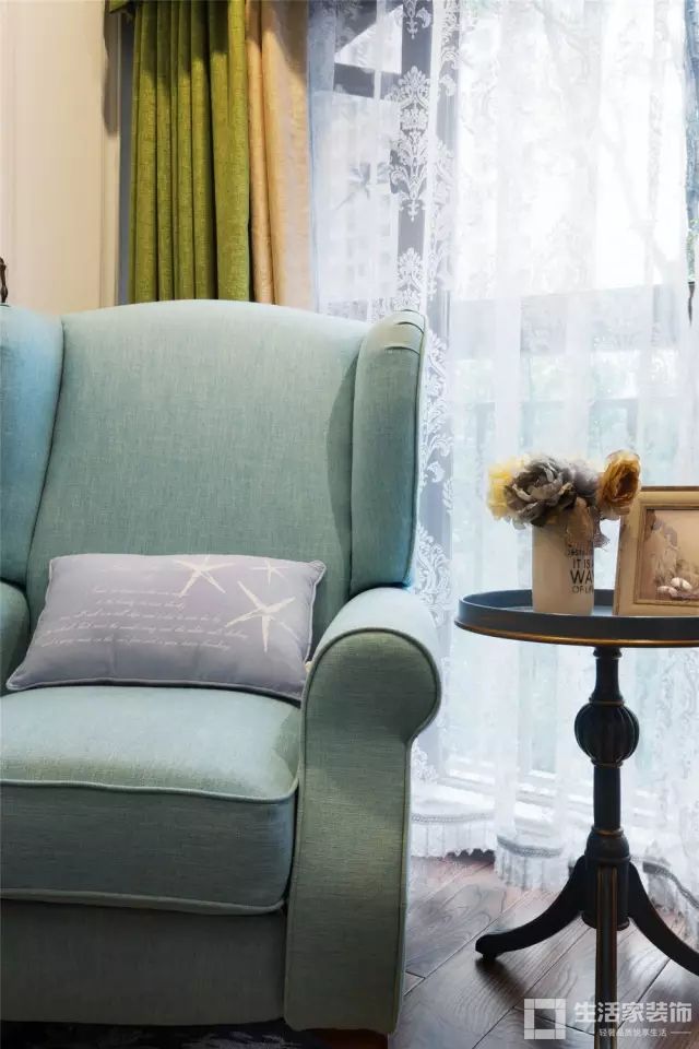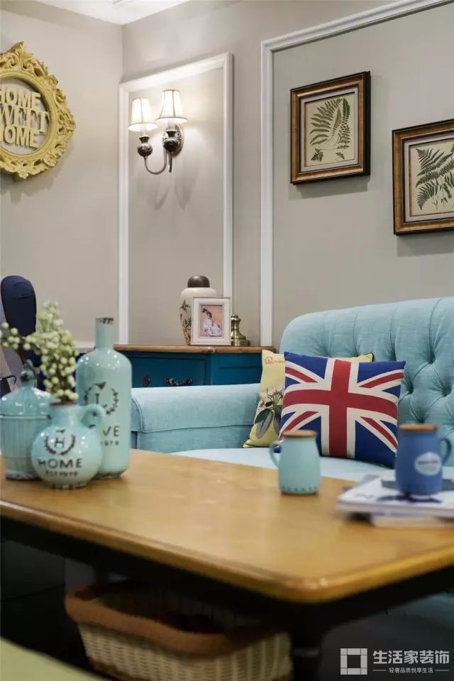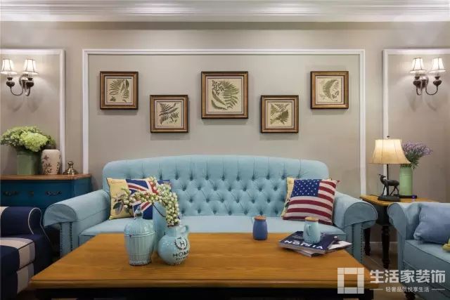 ▲典型美式元素的抱枕打破色彩的单一,起到很好的画龙点睛的作用。