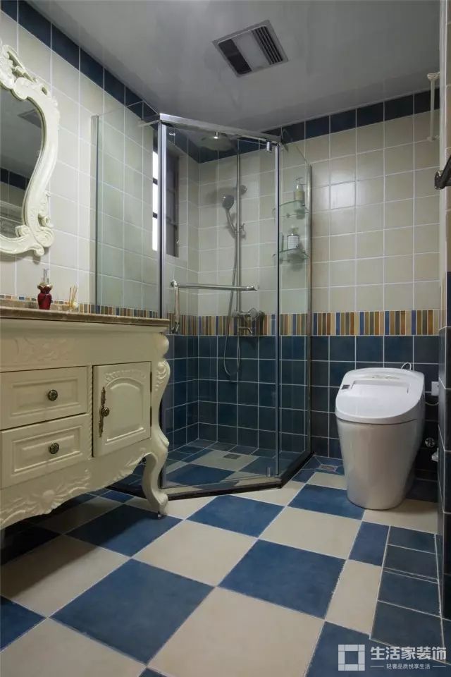 ▲家里有两个卫生间,一个是淋浴,一个还增加了浴缸,方便家庭成员的不同生活习惯。蓝白色拼贴搭配,让这个空间清爽干净。