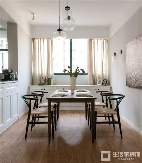如果餐厅定期更换桌布以及饰品,则要同时把窗帘的色系考虑进去。运用高明度的暖色系,营造洁净愉快的用餐环境,有利于增加食欲。