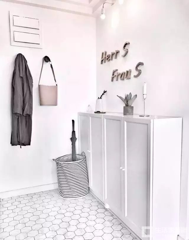 玄关使用淡淡的粉丝,和石材的地面完美融合。