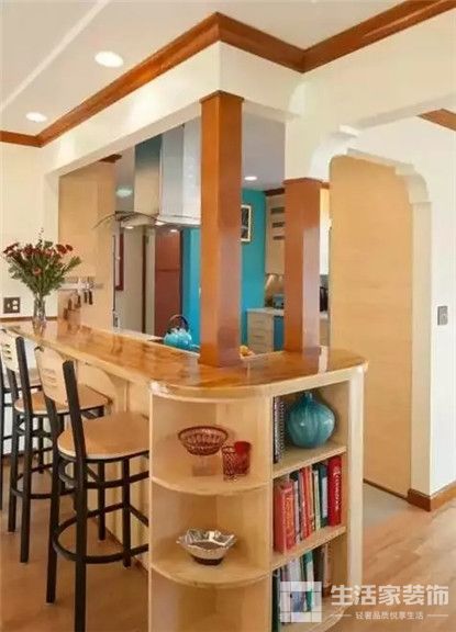 ▲如果家里空间够大,做一个大一些的吧台,当做餐桌用是个不错的选择~