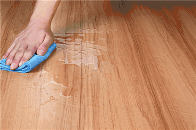 ▲处理霉变症状:在黄梅雨季,地板受潮的情况比较普遍。如不及时处理,容易长出霉斑。若发现地板有少量霉斑,可用温性漂白水和水以1:3的比例混合擦拭地板。但是若霉变面积过大或者已经深入地板内部,则需要考虑整体拆除。