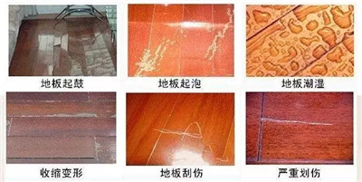 ▲普遍存在的地板症状:常见的地板问题可分为10类现象:变色、鼓包、起皮、瓦变、霉变、开裂、起拱、脱胶、扒缝、磨损。其导致原因,通常外部因素是指温度、湿度、光照、霉菌等。