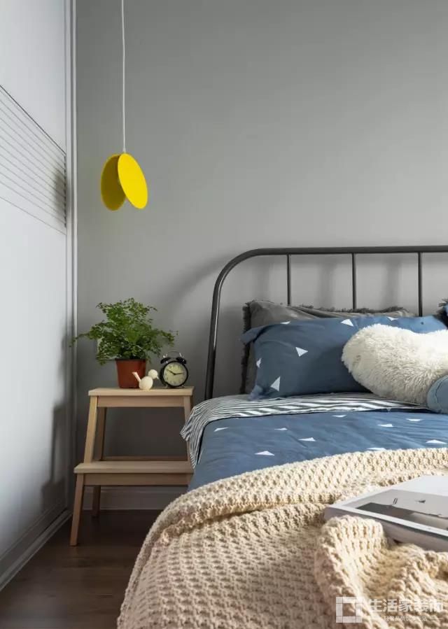 灰色、黄色是这套两居室的主色调,灰色看起来沉稳有质感,黄色跳跃有活力,两种颜色看似不搭,实则绝配。