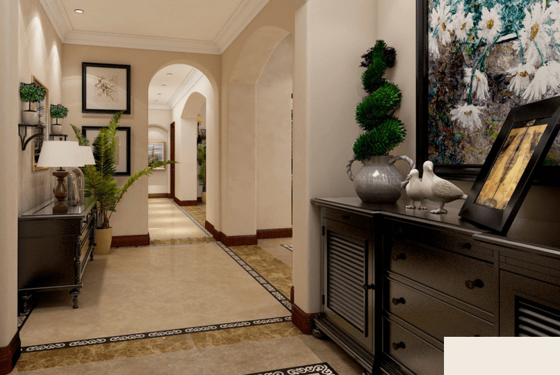 除了配色,玄关的纹理图案搭配也很重要,一般玄关的图案要遵从上圆下方的原则,也就是上部分可以以圆形为主要图案,下部分以方形为主,难免有“天圆地方”的意思,方形也就是代表家庭安稳。上有发展空间,下有安稳的根基,运势自然好。