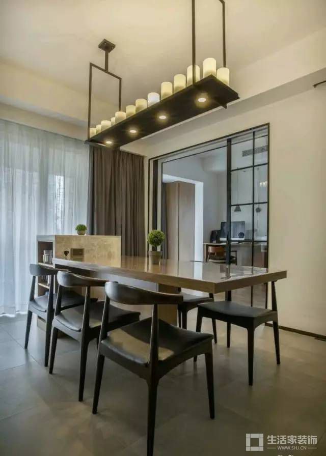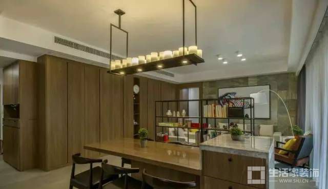 定制的餐桌吧台,深受一家人的喜爱,晚餐之后,一家人也能围着餐台工作、学习。