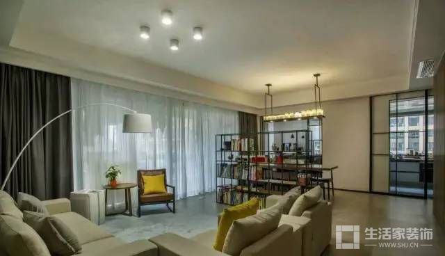 外观精美的铁艺书架毫不掩饰地放置在客厅中央,将餐厅和客厅做个视觉上的分隔,既能划分区域,又让家里的书能随手可及,有点像是在那种创意书店的错觉,随手翻阅一本书,然后端一杯咖啡走到旁边的沙发上静静阅读,让孩子在良好的阅读氛围里成长。