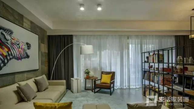 工作太繁重,杨小姐希望家越简单越好,在男业主的建议下舍掉了电视给客厅一个宽敞的空间,取而代之的是书架,这样的做法有些大胆且不常见但是深受杨小姐的喜欢与赞美。