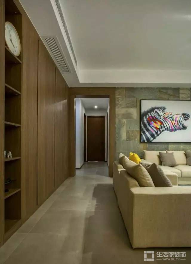 家里有老人、业主杨小姐夫妻两个还有一个小儿子,光是衣物和玩具等需要收纳的物品特别多,足够的收纳空间也是杨小姐一直想要解决的。落地窗对面的一整面柜子都是家里收纳的地方,这么大的空间可以把家里需要收纳的东西分门别类地进行收纳,还杨小姐一个简洁依旧的家。