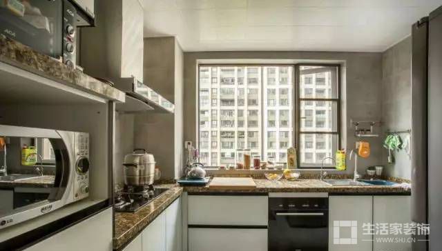 杨小姐一家的饮食习惯都是吃中餐,杨妈妈经常会做一些饼啊之类的小食,重口味的家庭饮食当然不能选择全开放式的,但是又要保持室内的光线通透和整体性,权衡下厨房使用玻璃移门做成半开放式,拥有大大窗户的厨房是多么幸福的一件事。