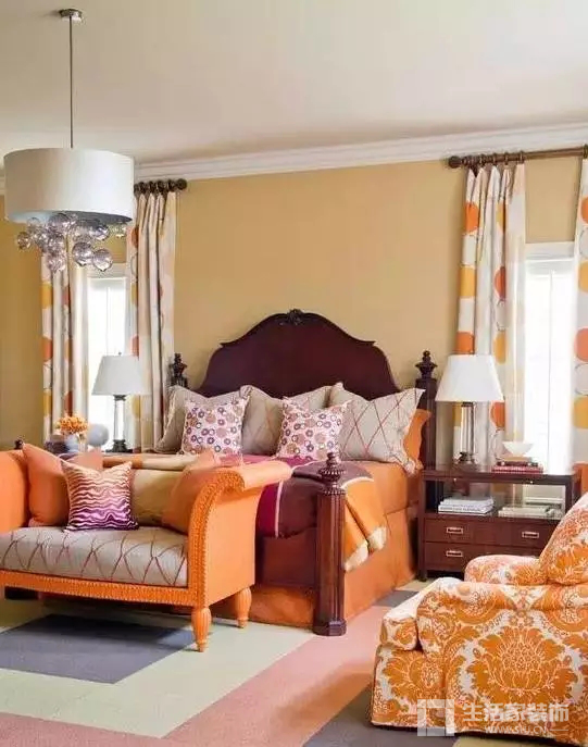 主卧室一般以温馨、淡雅为主,如果有特殊需求,也可采取特定风格配色。
