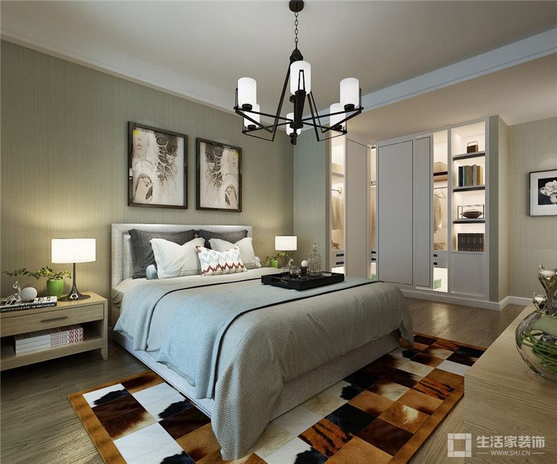 2)挂画以床为基准,离两侧的床边最好各30cm左右。