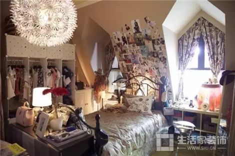 但是铁艺床后面的照片墙和花朵窗帘的组合,则带来视觉上的凌乱感。所以,我们在买窗帘的时候,一定要在不影响视觉效果的基础上,选择合适的一款。