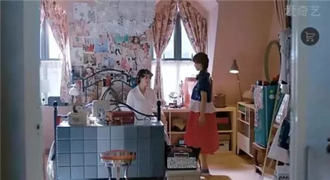 房间里整齐的收纳柜、简易鞋架、小碎花床品等,干净整洁而带有小清新的格调,很符合关关的人物特点。
