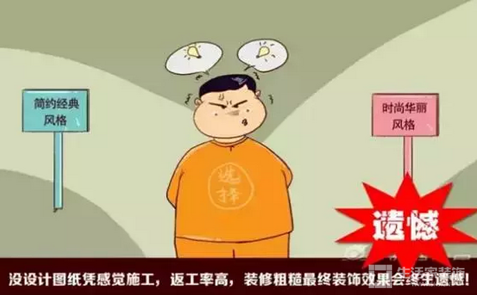 没设计图纸凭感觉施工,返工率高,最终设计效果往往会终生遗憾;找装修公司的设计师偷偷摸摸地给你出张图,还是七拼八凑的。因为设计师明目张胆地做私单会被公司抓到,他没有必要为了你那几百块钱冒着被公司干掉的危险。