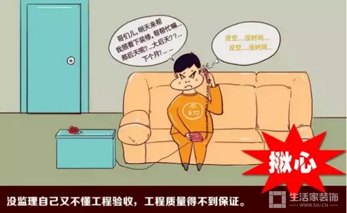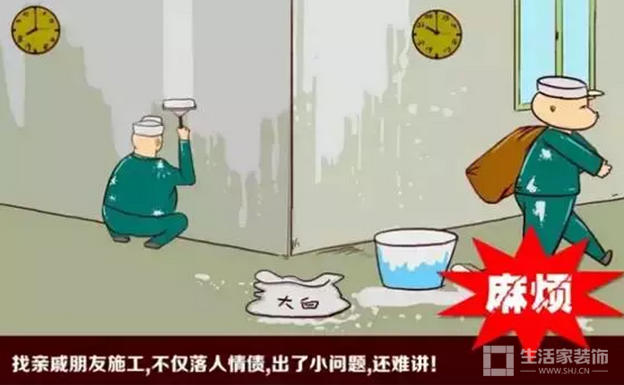 若是找亲戚朋友施工,平时还要好烟好酒伺候着,质量不好不但不好意思说还落人情债。因为出了点小问题被你发现了,你跟他说了,他心里百分之百会讲"这个人怎么这么事儿多?花这么一点儿钱还有这么高要求,可真够一说的!有钱想要好的质量你找正规公司去啊!"结果,好多人都是吃了哑巴亏。