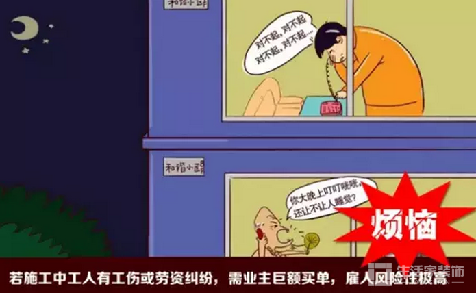 雇游击队施工属违法行为,若有邻居举报会被处以上千元的处罚;若施工中工人有工伤或劳资纠纷,即使事先有书面约定,还是无济于事,需业主巨额买单,雇人风险性极高,这样的案例每年都不少。