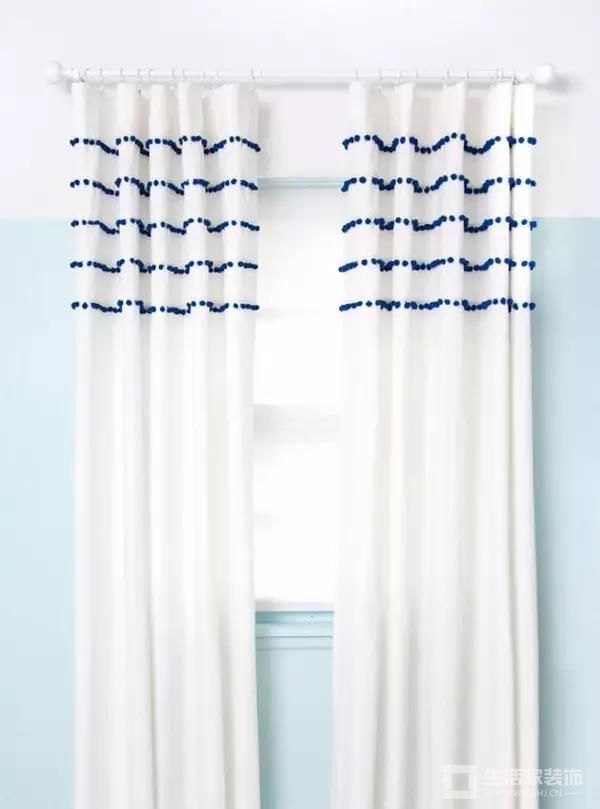 浴室里纯色的窗帘也可以变得有趣,比如几排毛绒球……会有买了新窗帘的错觉。