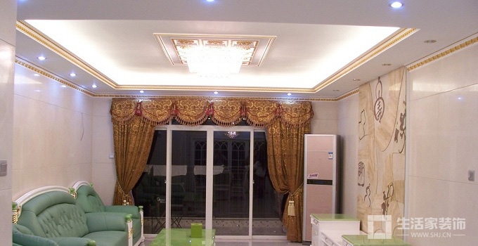 此种吊顶可用木材夹板成型,设计成各种形状,再配以射灯和筒灯,在不吊顶的中间部分配上较新颖的吸顶灯,会使人觉得房间空间增高了,尤其是面积较大的客厅,效果会更好。