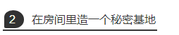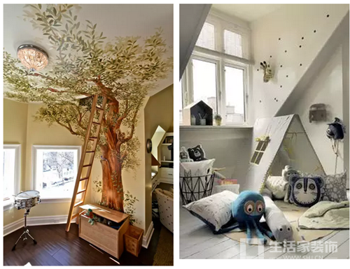 小建议:在家里建书屋、小阁楼这样奇异的场景也许对大多数家庭的户型会有更多的要求,不过我们依旧可以通过攀爬墙、帐篷、秋千等方法来做一些补足。