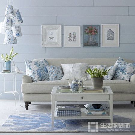 淡蓝色与白色的组合总能给人一种唯美梦幻的感觉,装饰画的选择也要与空间色调相匹配,整体搭配十分清新沁凉。
