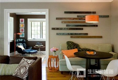 几根木条随意地贴上墙就是很好的装饰,颜色也可以任意涂刷,用材可以选择装修剩下的废料,既省钱,又能够体现个性。
