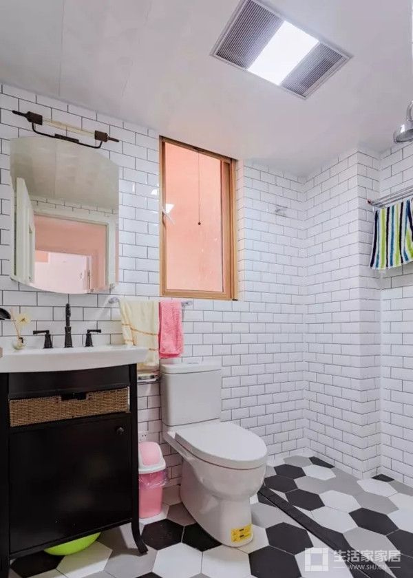 ▲黑白灰相间的六边形地砖是个亮点,让这个卫浴看起来时尚很多。