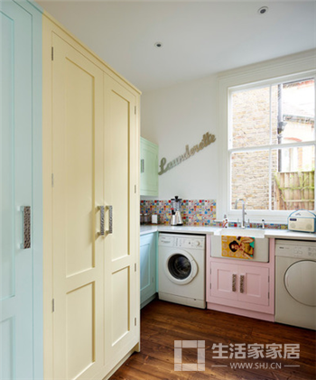 杂物间虽然不是你日常休息的地方,但也是经常要用到的空间,所以添加一点装饰并不是没有用,1950年代装饰风格感觉非常漂亮复古,混搭彩色,明亮的石膏墙壁彩色小瓷砖和复古的背景墙,仿佛是装进了春天。