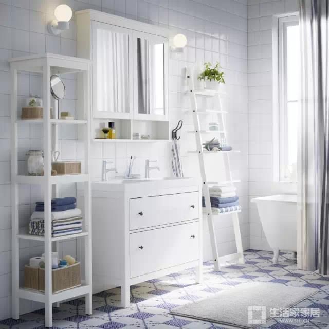 如果嫌浴室东西太多容易乱,干脆像这样摆两把架子,一切都整齐了。