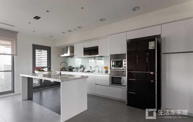 厨房空间中心设置中岛,可作为料理台面,或是加装洗涤槽、红酒柜及净水设备,成为轻食吧台区,中岛与四周最好保留90~120公分距离,让动线更为流畅便利。