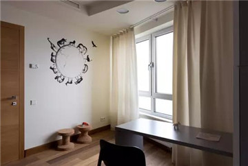 编辑点评:灰白色的家具虽简约时尚,但却偏沉重和单调,不妨尝试在空白的背景墙通过彩绘来提升儿童房的活力和气氛,或许还能激发孩子的想象力和创造力。