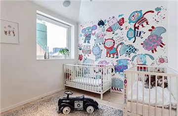 编辑点评:用卡通人物墙纸装饰婴儿房,鲜活的色彩让空间瞬间显得活力四射、童趣无限。