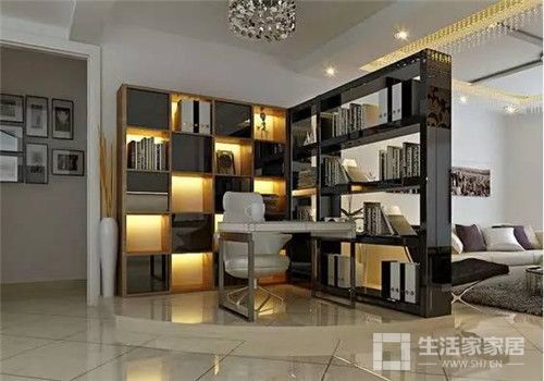 用书架把客厅和书房快速区分开来,工作娱乐两不误。