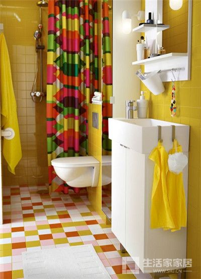 亮黄色的浴室,让心情也明亮起来呢。