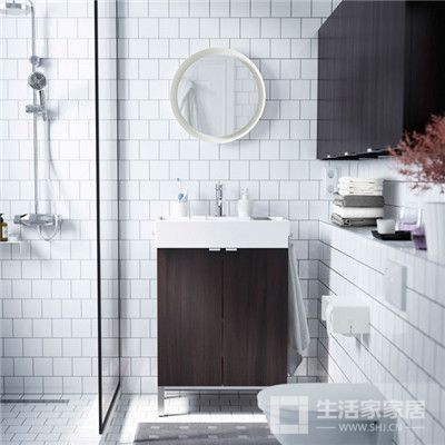 当你使用瓷片装修时,虽然浴室会很单调,但你可以用浴室柜、浴室镜、小物件来让浴室变得不一样。