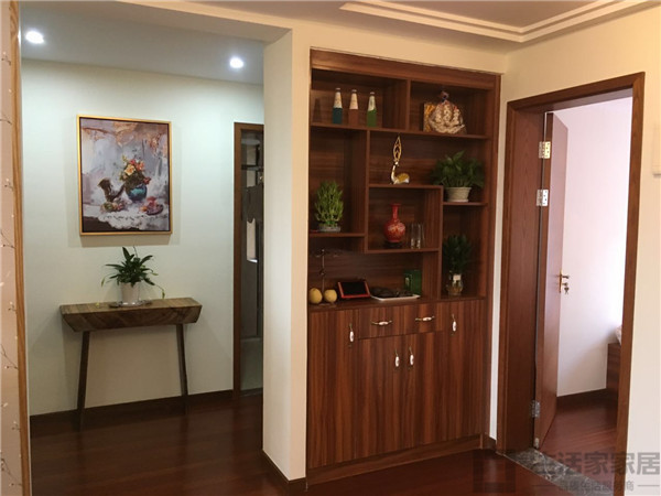 几个卧室的连通过道也做了简单的装饰和边柜,后期入住就了还能再摆一些家庭合照,温馨感十足。