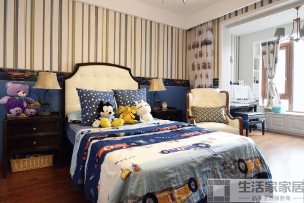 首先色泽要典雅,以暖色调为主,不可用太刺眼的大红大紫色,避免刺激小孩。也忌用黑色及纯白色,而用但蓝色为底点缀一些草绿、明黄、粉红的色泽则较好,能取得和谐的效果。