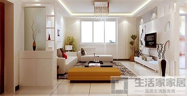 小户型很难做一些大的装饰花样,但为了避免空间单调我们可以做一下有创意的设计,比如尝试一些镂空效果。在你的沙发背景墙后面设计成镂空的,不仅显得空间不那么死板,反而还能在视觉上起到连通两功能区的效果,简单的设计就能达到理想的效果,我们值得一试。