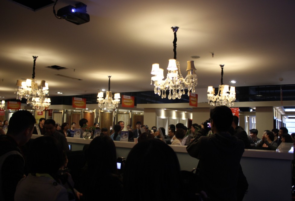 抽奖活动开始前 健明迪装饰的伙伴们已经准备好了业主就坐场地
