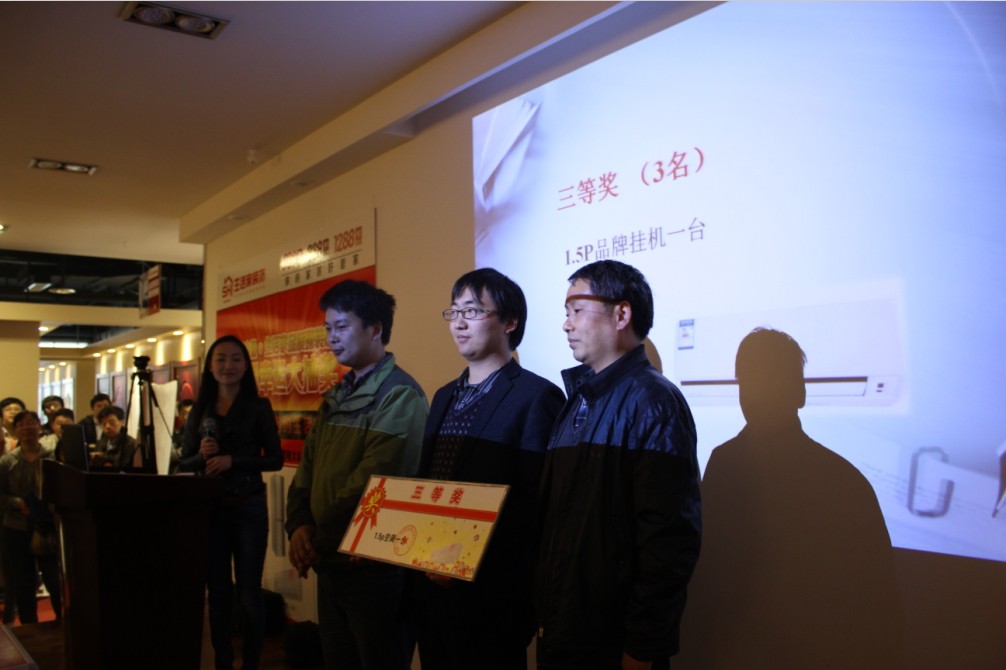 此次抽奖活动设置多重大奖,奖品数量繁多。包括有46寸液晶电视,双门冰箱,滚筒洗衣机,1.5p挂机,3p柜机价值三万元的家电大礼包,健明迪装饰精美纪念礼品等。
