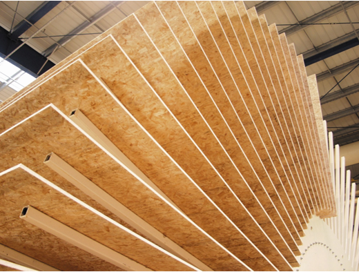 纯进口OSB板,甲醛释放量非常的低,远低于欧标E1级。目前国内有厂家生产这种板材也叫OSB,但环保只能达到国标E1级,环保系数上是无法得以保障的。OSB板结构均匀,施工时可随便加工,锯、刨、钻、钉、开槽、雕刻等均可。