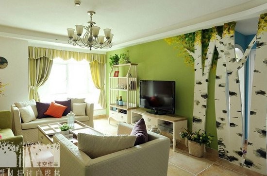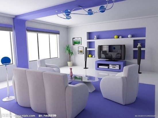 客厅的色彩一般选择比较酷,特别是当你设计这样一个现代的风格,色彩可以选择年轻,如你自己选择的紫色和绿色,是一个浪漫的一种表现,二是有活力的表现。