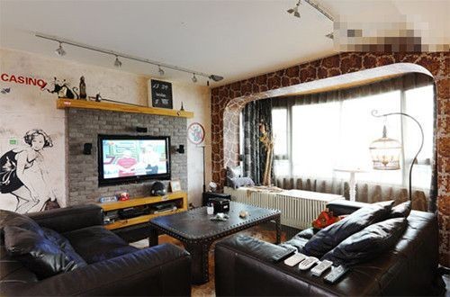 健明迪装饰优秀设计师,通过砖块打造的电视墙 ,复古气息浓郁,旁边的空白墙壁上,一幅人物画像格外吸引我们的目光。虽然只有黑色白色两种色彩,犹如铅笔画的样式,但是简洁中,绝对不失整体的浪漫与温馨之感。