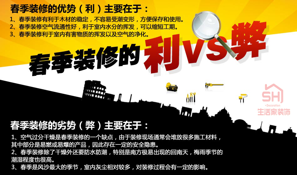 俗话说,“一年之计在于春”,很多人都说春天是家庭装修的好时节,因为开春各大建材卖场促销方式多样,能购买到更加实惠的建材,装修公司人手也会比较充足。但是,还有不少人认为天气乍暖还寒的春季多变的天气给家居装修造了很大的麻烦。那么,春季装修到底好不好呢?下面就随小编一起来全方位解析春季装修的利与弊吧: