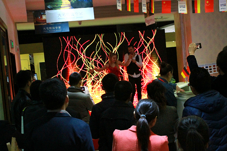 德国资深Dncer为健明迪“德国周“助阵,业主们都一拥而上欣赏德国艺术。价值2160元的12平米德国都芳水性木器漆现场定装修即可免费体验!