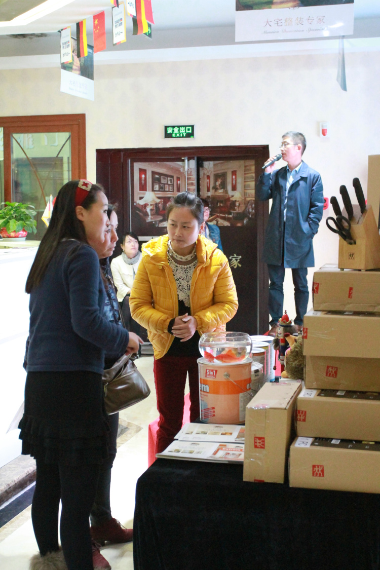 业主现场体验德国都芳水性木器漆,德国都芳漆工作人员详细介绍。业主们亲历见证德国都芳水性木器漆的金鱼实验。